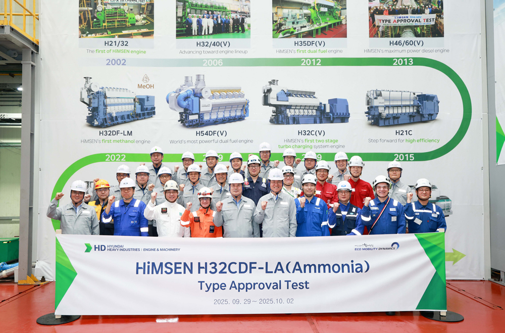 The engine at the centre of this achievement, the H32CDF-LA, is HHI-EMD’s latest addition to its low-carbon HiMSEN engine portfolio. HHI-EMD’s Head of Engine Development, Seonghun Lee said “The H32CDF-LA is an ammonia dual-fuel engine based on the proven H32C diesel platform and equipped with the world’s first high-pressure direct-injection ammonia technology introduced in 2024.”
