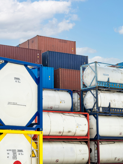 - ISO tank containers, which are standardised globally and can be stacked, handled, and shipped like any other container.